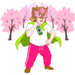 芝生に設置された木製看板のデザインに、可愛らしい桜のキャラクターを添えました。