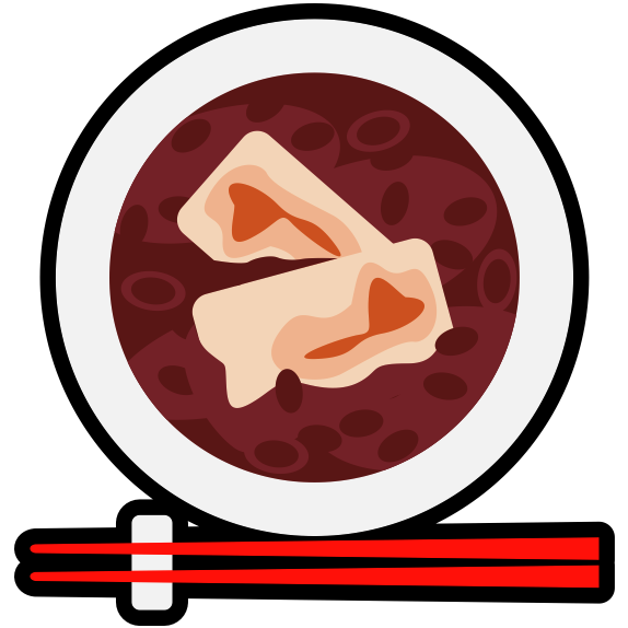 たっぷりの小豆に角餅が二個入ったお汁粉(ぜんざい)のアイコン